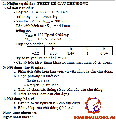 Xe cơ sở dùng để thiết kế là xe KIA K2700. Thông số cho trước xe KIA K2700 được thể hiện như sau: