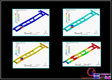 Kết quả tính toán là các giá trị nội lực, ứng suất và trạng thái biến dạng của khung xe tương ứng với các chế độ tải trọng đặc trưng nhất đối với khung xe quân sự làm cơ sở đánh giá độ bền, độ cứng vững của khung xe quân sự.