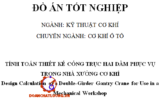 Thời gian vừa qua với sự hướng dẫn, chỉ bảo tận tình của giáo viên hướng dẫn cùng với việc tìm hiểu, tham khảo những tài liệu chuyên ngành máy xây dựng, kinh nghiệm của những người đi trước và đề tài liên quan em đã hoàn thành cơ bản về nôi dụng đề tài tốt nghiệp “Tính toán thiết kế cầu trục hai phục vụ trong nhà xưởng cơ khí”. Trong hơn 3 tháng thực hiện đề tài, có những khó khăn và thuận lợi nhất định. Khó khăn là phải đi phải tìm hiểu, tiếp thu những kiến thức tương đối mới và hạn chế trong việc tìm kiếm tài liệu về cổng trục .Thuận lợi là sự quan tâm, chỉ bảo của giáo viên hướng dẫn thầy: TS……………….. Trong đề tài này em đi sau tìm hiểu về kết cấu thép, cơ cấu di chuyển, cơ cấu nâng hạ, quy trình lắp dựng, quy chuẩn an toàn.