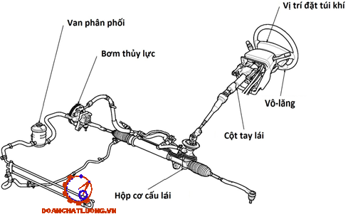 - Cơ cấu lái, vô lăng và trục lái: Dùng để tăng và truyền mômen do người lái tác dụng lên vô lăng đến dẫn động lái;