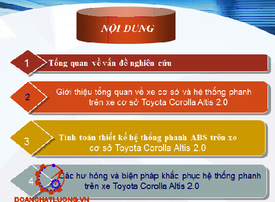 Từ vấn đề đó, với những kiến thức đã học và sự hướng dẫn tận tình của Thầy: TS…………….., em quyết định thực hiện đề tài: “TÍNH TOÁN THIẾT KẾ HỆ THỐNG PHANH ABS TRÊN XE TOYOTA CORROLA ALTIS 2.0".
