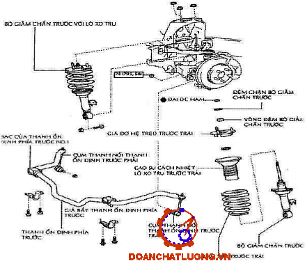 Chức năng: là bộ phận nối mềm giữa bánh xe và thùng xe, nhằm biến đổi tần số dao động cho phù hợp với cơ thể con người (60-80 lần/ph). Bộ phận đàn hồi có thể bố trí khác nhau trên xe nhưng nó cho phép bánh xe có thể dịch chuyển theo phương thẳng đứng.