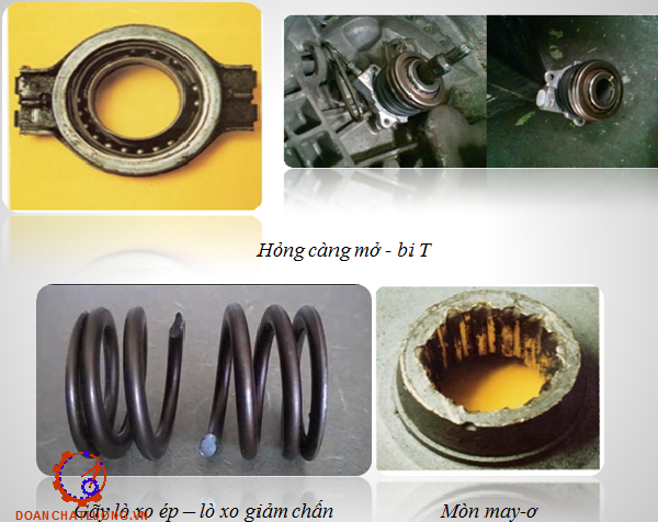 Hư hỏng, nguyên nhân: Lò xo ép bị nứt gãy do làm việc lâu ngày, bảo dưỡng không đúng định kỳ dẫn đến ly hợp bị trượt sinh ra nhiệt, Tác hại là các chi tiết bị biến dạng, biến tính dẫn đến hỏng.