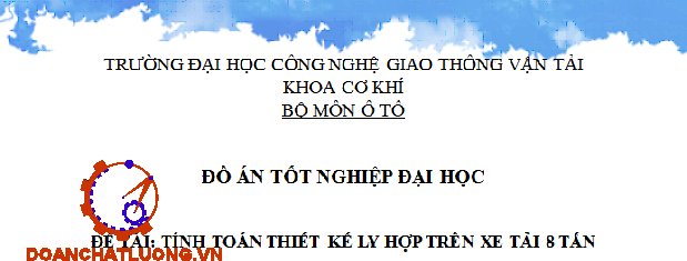 Với đề tài như trên, phần đầu đồ án em sẽ giới thiệu sơ lược về ô tô tải cửu long 8 tấn, trình bày công dụng, bố trí chung, yêu cầu và cách phân loại ly hợp, xác định loại ly hợp thường được sử dung trên xe tải 8 tấn. Phần tiếp theo đi sâu nghiên cứu, phân tích kết cấu của ly hợp trên ô tô và các phần tử trong ly hợp. Để phục vụ tốt hơn cho quá trình khai thác, phần tính toán em sẽ tiến hành kiểm nghiệm trên ô tô cụ thể, nhằm làm quen với mô hình tính toán kiểm nghiệm. Trên cơ sở đó, phần cuối của đồ án sẽ đưa ra các hướng dẫn trong quá trình khai thác, sử dụng đối với ly hợp xe tải.