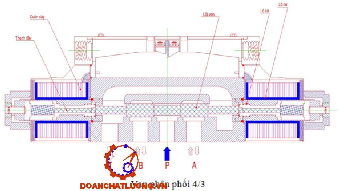 Ta chọn van phân phối 4/3 của hãng TAIWAN FLUID POWER - Đài Loan, có kí mã hiệu như sau : DSG-3C3-03-AC220v/50Hz.