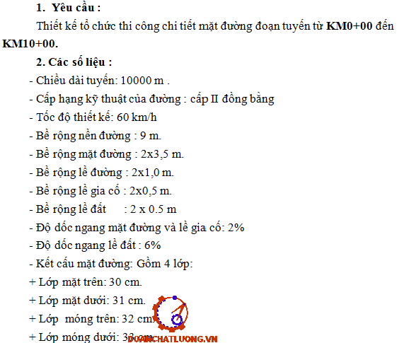 - Độ dốc ngang mặt đường và lề gia cố:2%