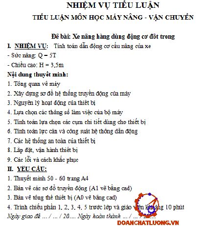 Thiết kế môn học Máy nâng - Vận chuyển giúp củng cố lại các kiến thức đã học trong học kỳ qua và em xin chân thành cảm ơn thầy: TS. ……………… và các bạn trong bộ môn cơ khí đã giúp đỡ em rất nhiều trong quá trình thực hiện thiết kế môn học
